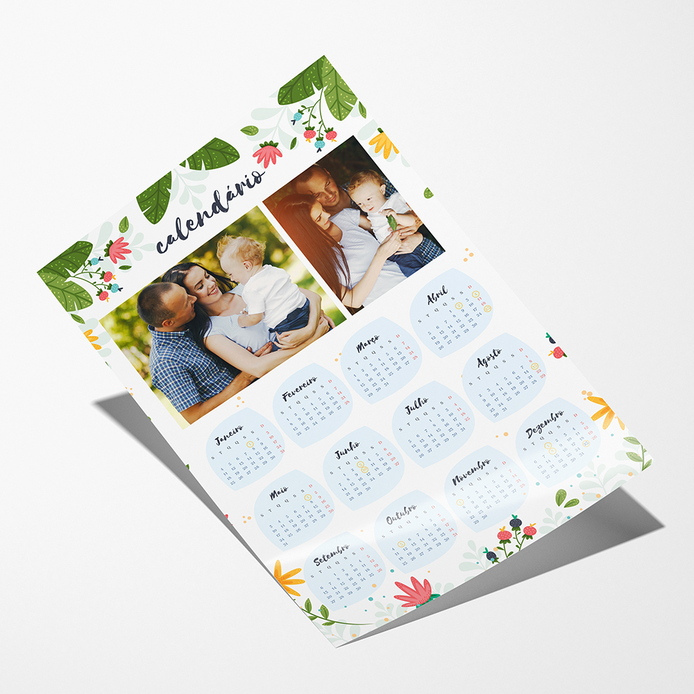 As fotografias do Calendário de Parede são reveladas em papel couché de alta qualidade. Este tipo de impressão irá proporcionar uma imagem nítida com cores vivas e intensas, o que confere ao teu calendário uma maior consistência e uma durabilidade superior.